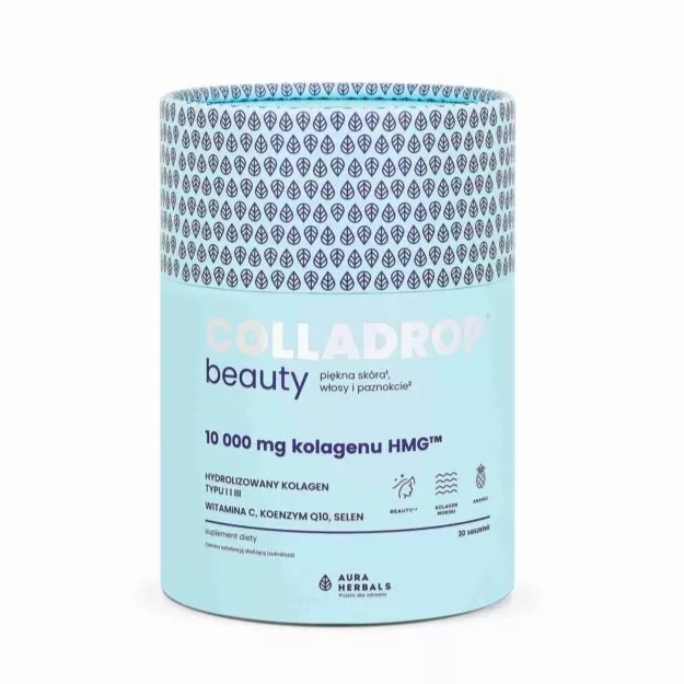 Colladrop® Beauty to innowacyjny suplement diety, który wspiera piękno skóry, włosów i paznokci. Każda saszetka zawiera aż 10000 mg markowego kolagenu morskiego Collagen HMG™, wzbogaconego o kluczowe składniki odżywcze, takie jak koenzym Q10, selen i witaminę Quali®-C.