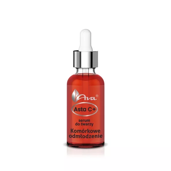 Ava Laboratorium Asta C+ serum do twarzy Komórkowe Odmłodzenie 30ml to wyjątkowy produkt, który oferuje spłycenie zmarszczek, zwiększoną elastyczność oraz redukcję przebarwień skóry. Sekret jego skuteczności tkwi w astaksantynie - najsilniejszym znanym w przyrodzie przeciwutleniaczu o unikalnej budowie molekularnej. Działając odmładzająco, astaksantyna wygładza skórę, zwalcza wolne rodniki, przeciwdziała procesom fotostarzenia i przyspiesza regenerację.