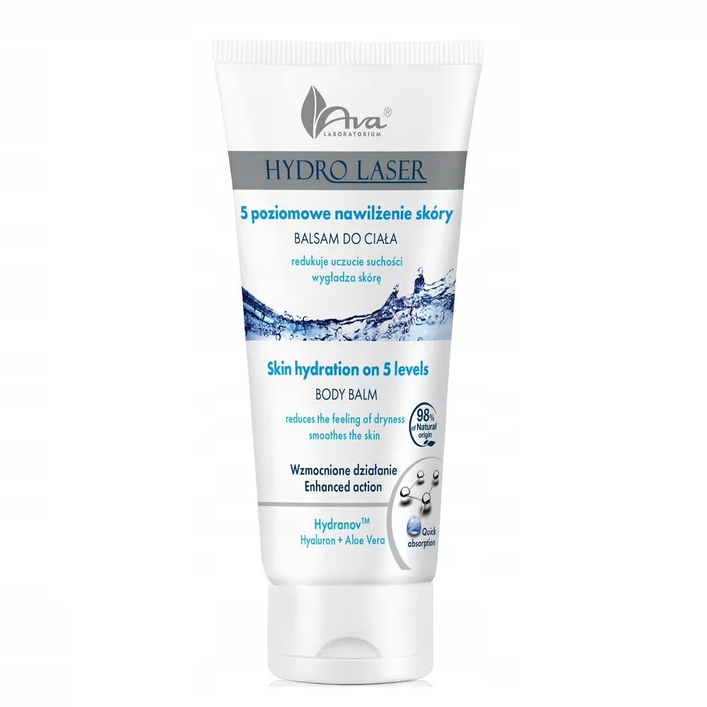 Ava Laboratorium Hydro Laser nawilżający balsam do ciała 200ml to intensywnie nawilżający produkt, który szybko się wchłania i znacząco poprawia kondycję skóry. Jego wyjątkowa formuła działa na wszystkie 5 warstw naskórka, oferując zaawansowaną pielęgnację.