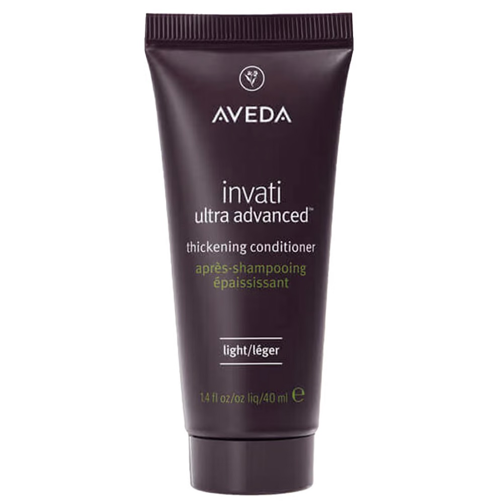 Aveda Invati Ultra Advanced Thickening Conditioner Light 40ml to zagęszczająca odżywka do włosów cienkich i średniej grubości, która pielęgnuje i natychmiast poprawia gęstość fryzury dzięki innowacyjnej mieszance składników roślinnych. To drugi krok w zaawansowanym systemie pielęgnacji Invati Ultra Advanced™ 4-Step, który redukuje wypadanie włosów aż o 77% i wzmacnia przerzedzające się pasma. Lekka formuła rozplątuje włosy, odżywia je i natychmiast zwiększa ich objętość, jednocześnie dbając o skórę głowy.