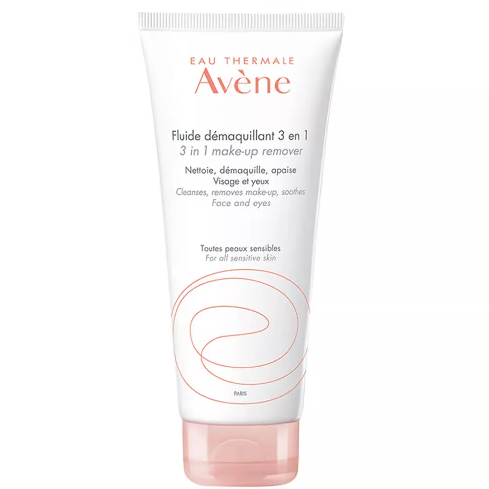 Avene 3in1 Make-up Remover to mleczny fluid o lekkiej i komfortowej konsystencji, który doskonale oczyszcza i usuwa makijaż z twarzy, oczu i ust w jednym, szybkim kroku. Zawiera skuteczne substancje oczyszczające, które rozpuszczają zanieczyszczenia, a naturalne właściwości kojące wody termalnej Avène zapewniają skórze miękkość. Produkt jest odpowiedni dla każdego rodzaju skóry wrażliwej.