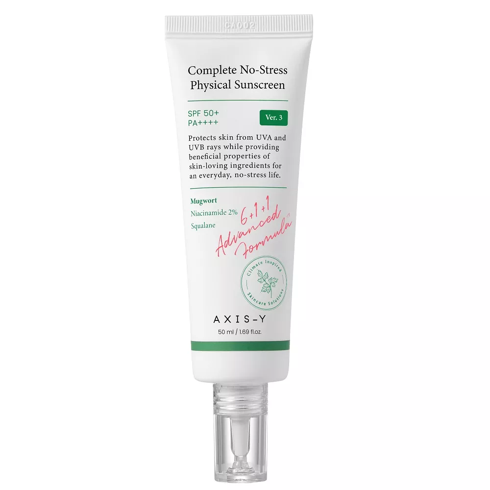 Lekki, nawilżający krem Axis-y Complete No-Stress Physical Sunscreen V.3 SPF50+/PA++++ to doskonała ochrona przeciwsłoneczna dla każdego rodzaju cery, w tym skóry wrażliwej i skłonnej do trądziku. Dzięki zastosowaniu filtrów fizycznych, krem zapewnia delikatną, ale skuteczną barierę przeciwko promieniowaniu UV, jednocześnie pielęgnując skórę za pomocą naturalnych składników, takich jak bylica, ekstrakt z nagietka i niacynamid.