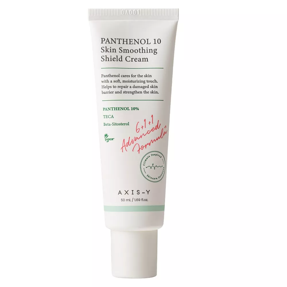 Axis-y Panthenol 10 Skin Smoothing Shield Cream to regenerujący krem do twarzy stworzony z myślą o potrzebach podrażnionej skóry. Dzięki zawartości 10% pantenolu, produkt pomaga przywrócić równowagę hydrolipidową skóry, zapewnia natychmiastowe nawilżenie oraz skutecznie łagodzi podrażnienia i zaczerwienienia. Skutecznie zatrzymuje wilgoć w komórkach skóry, zmiękcza ją i wzmacnia naturalną barierę ochronną. Zrównoważona formuła kremu marki AXIS-Y działa antyoksydacyjnie i kojąco, przynosząc ulgę zmęczonej skórze.