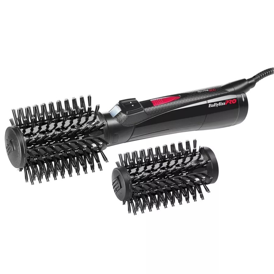 Obrotowa suszarko-lokówka BaByliss PRO Rotating 800 powstała w technologii ceramicznej oraz posiada naturalne włosie z dzika i nylonu z końcówkami z żywicy. Urządzenie doda Twoim włosom niesamowitej objętości, a dzięki zastosowaniu technologii jonizacji zapobiega elektryzowaniu i puszeniu się włosów. Świetnie sprawdzi się w codziennej stylizacji pasm. Szczotka 40mm świetnie sprawdzi się w stylizacji krótszych włosów i grzywek, a szczotka 50mm świetnie sprawdzi się w przypadku włosów długich.