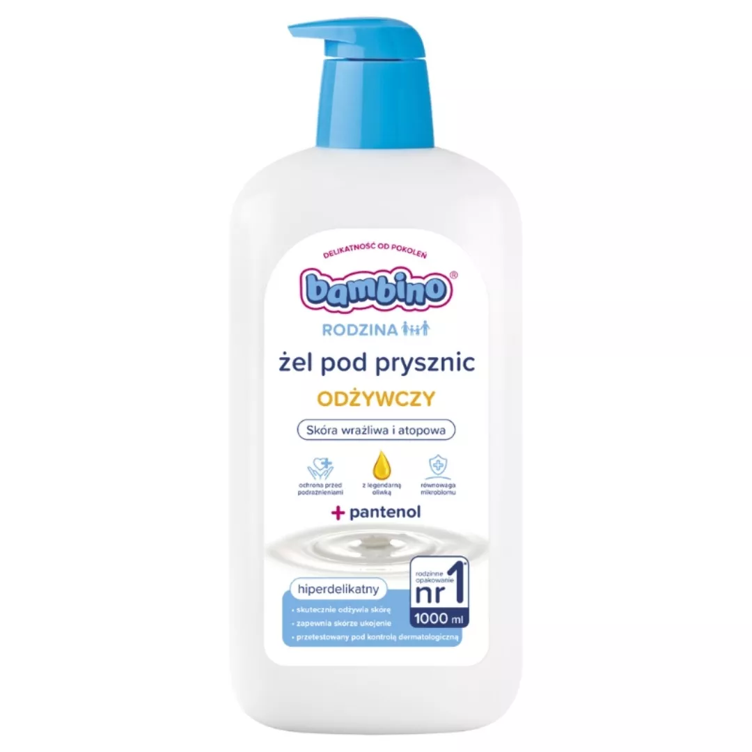 Bambino Rodzina odżywczy żel pod prysznic to łagodny kosmetyk przeznaczony do codziennego stosowania pod prysznicem i w wannie. Dzięki zawartości legendarnej oliwki Bambino i pantenolu, skutecznie odżywia skórę oraz pomaga zapobiegać podrażnieniom.