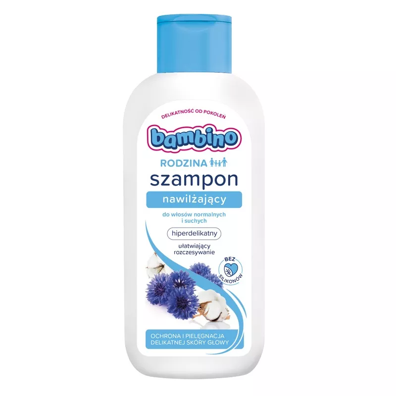 Nawilżający szampon Bambino Rodzina został stworzony z największą czułością, aby zadbać o włosy i skórę głowy całej rodziny! Wzbogacona o drogocenne składniki i ekstrakty pochodzenia naturalnego formuła pielęgnuje włosy oraz zapobiega podrażnieniom, nawilża skórę głowy i wzmacnia włosy, nadając im blasku. Szampon nie zawiera silikonów, ułatwia rozczesywanie i nie szczypie w oczy. Można go stosować w codziennej pielęgnacji włosów już od 3 roku życia. Produkt został wymyślony oraz wyprodukowany w Polsce.