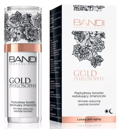 Bandi Gold Philosophy Peptydowy Booster Redukujący Zmarszczki 30ml to luksusowy krem o lekkiej, żelowej konsystencji, stworzony z myślą o skutecznej pielęgnacji przeciwstarzeniowej. Zawiera aż trzy rodzaje zaawansowanych peptydów, które kompleksowo redukują widoczność zmarszczek – zarówno pod względem ich długości, jak i głębokości. Regularne stosowanie preparatu poprawia jędrność, elastyczność oraz kontur twarzy, zapewniając młodszy i bardziej promienny wygląd skóry. Produkt odpowiedni do każdego rodzaju cery z widocznymi, nawet głębokimi, zmarszczkami.
