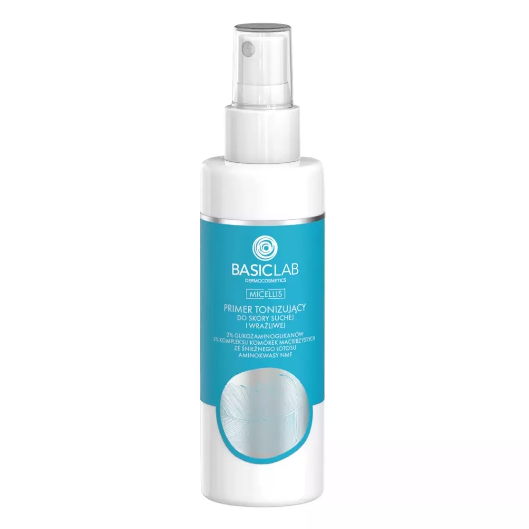 BasicLab Micellis Primer tonizujący do skóry suchej i wrażliwej to innowacyjne połączenie aktywnego toniku i bazy pod pielęgnację. Produkt ten skutecznie nawilża, wygładza i przygotowuje skórę do przyjęcia kolejnych kosmetyków. Ułatwia aplikację, minimalizując ryzyko rolowania się innych produktów, co pozwala na lepsze łączenie warstw, na przykład podczas reaplikacji ochrony przeciwsłonecznej.