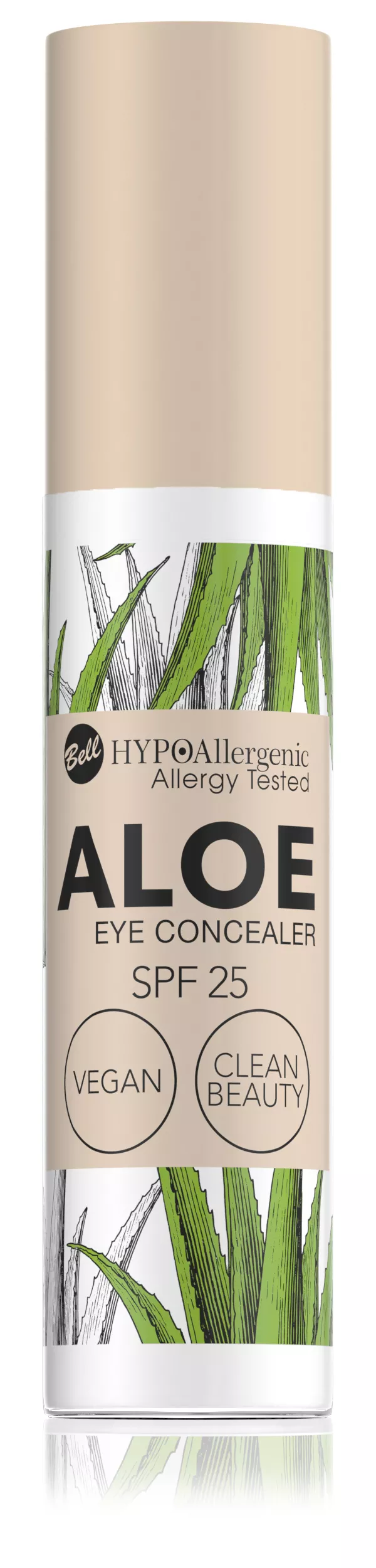 Bell Hypo Aloe Eye Concealer SPF 25 to wyjątkowy, hypoalergiczny korektor pod oczy, który łączy w sobie kamuflujące i ochronne właściwości. Jego lekka, beztłuszczowa formuła jest odporna na zbieranie się w załamaniach skóry, co sprawia, że idealnie kryje cienie pod oczami, odświeża spojrzenie i nadaje efekt wypoczęcia, nawet po nieprzespanej nocy. Dzięki filtrowi SPF 25, korektor chroni delikatną skórę pod oczami przed szkodliwym działaniem promieni słonecznych. Produkt jest odpowiedni dla wegan i zawiera 80% składników pochodzenia naturalnego, zgodnie z trendem Clean Beauty. Jest dostępny w 2 kolorach i nie zawiera mikroplastików. Przebadany pod kontrolą dermatologa i okulisty.