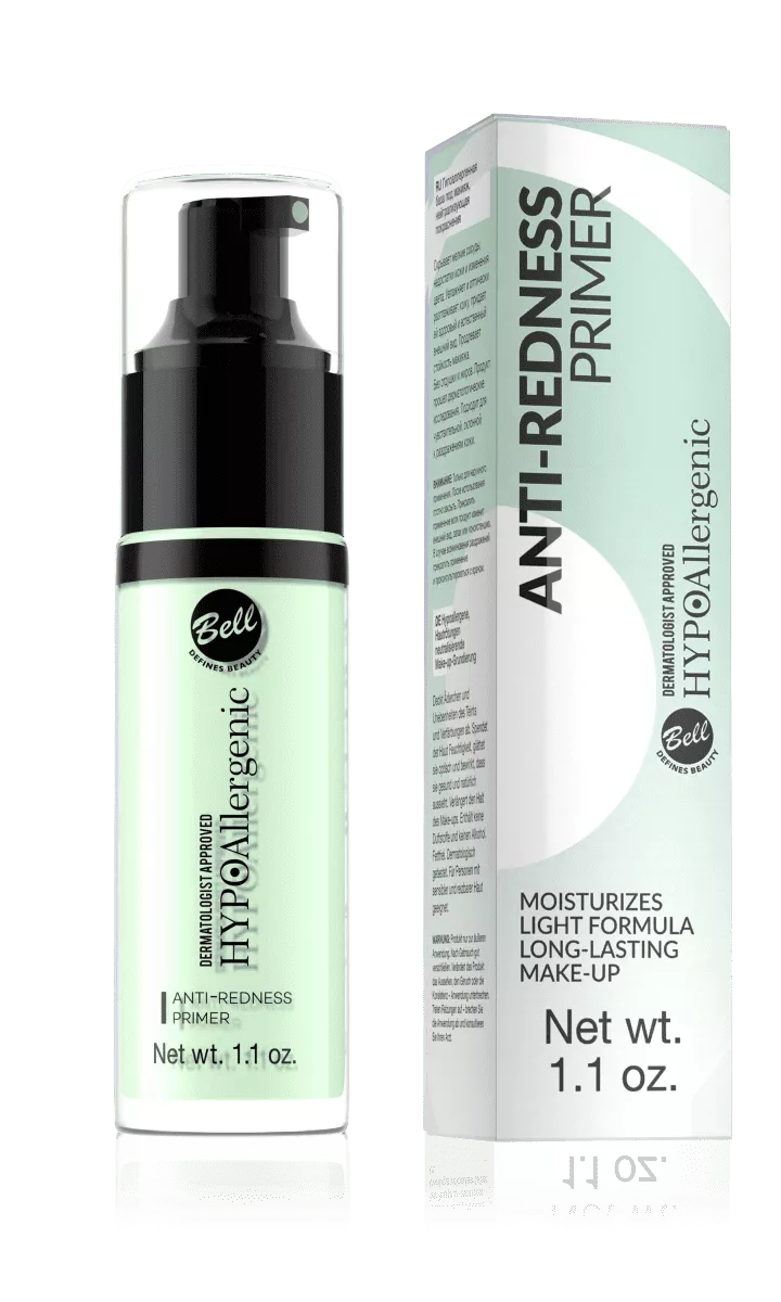 Bell HYPOAllergenic Anti-Redness Primer to baza, która skutecznie neutralizuje zaczerwienienia i tuszuje niedoskonałości cery. Dzięki niej naczynka oraz przebarwienia stają się niemal niewidoczne. Produkt nawilża, optycznie wygładza skórę i przedłuża trwałość makijażu. Jego lekka formuła zapewnia łatwe i równomierne rozprowadzanie.