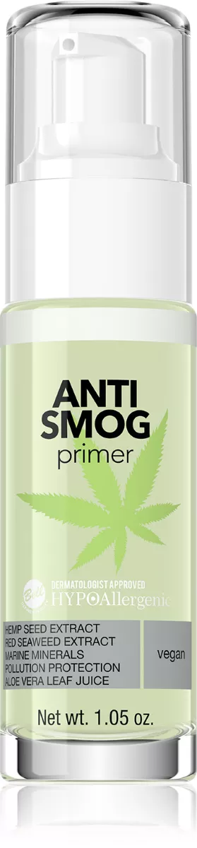 Bell HYPOAllergenic Anti-Smog Primer to innowacyjna baza pod makijaż, która łączy w sobie ekstrakt z nasion konopi oraz sok z liści aloesu, aby intensywnie nawilżać skórę, poprawiać jej jędrność i spowalniać proces starzenia. Dzięki zawartości bogatego w minerały ekstraktu z alg morskich, produkt tworzy na skórze barierę ochronną, zabezpieczając ją przed zanieczyszczeniami i szkodliwymi czynnikami zewnętrznymi. Ta wegańska baza skutecznie przedłuża trwałość makijażu, zapewniając uczucie komfortu przez długi czas. Produkt jest przebadany pod kontrolą dermatologiczną i odpowiedni dla osób o cerze wrażliwej, skłonnej do podrażnień.