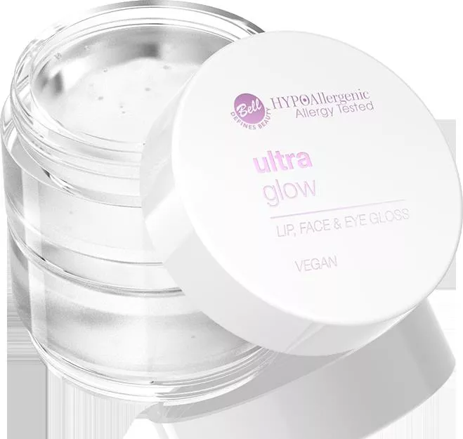 Bell Hypoallergenic Ultra Glow Lip, Face&Eye Gloss 01 Clear to innowacyjny, przezroczysty produkt, który nadaje ustom, twarzy i powiekom wyjątkowy efekt "glass skin". Dzięki niemu skóra staje się nieskazitelnie gładka i błyszcząca jak tafla szkła. Jego lekka i nietłusta konsystencja ułatwia aplikację, a produkt może być stosowany zarówno na niepomalowaną cerę, jak i na gotowy makijaż, zapewniając świeże, mokre wykończenie oraz naturalny blask.