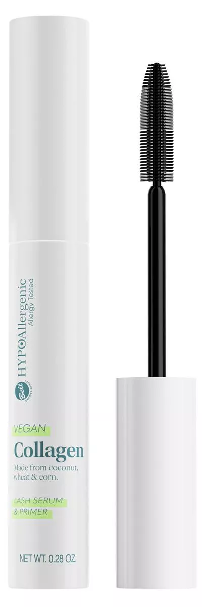 Bell Hypoallergenic Vegan Collagen Lash Serum & Primer 01 to wegańskie serum do rzęs, które stanowi doskonałe połączenie pielęgnującej odżywki i bazy. Produkt nadaje rzęsom dodatkową objętość, tworząc efekt „fluffy look”. Dzięki precyzyjnej, silikonowej szczoteczce, otulająca konsystencja serum wydłuża, zagęszcza i pogrubia nawet najkrótsze rzęsy, przygotowując je do nałożenia tuszu.