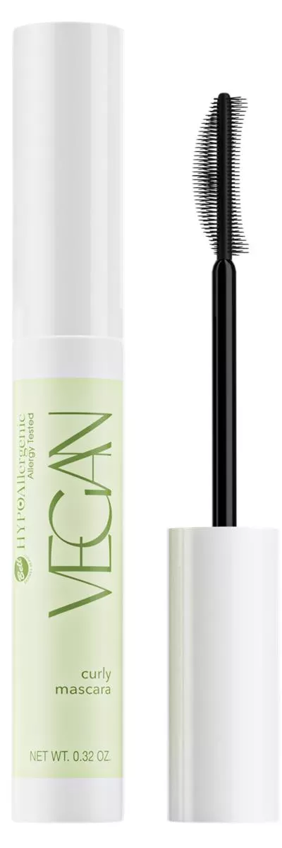 Bell Hypoallergenic Vegan Curly Mascara 01 to wegański tusz do rzęs, który doskonale podkręca, wydłuża i pogrubia rzęsy, jednocześnie nadając im intensywnie czarny kolor, który podkreśla spojrzenie i dodaje mu wyrazistości. Pielęgnująca formuła zawiera oliwę z oliwek i olej rycynowy, które nadają rzęsom połysk, poprawiają ich kondycję oraz zwiększają elastyczność. Hypoalergiczna formuła optycznie zagęszcza rzęsy i jest wzbogacona o wosk z otrębów ryżowych oraz nawilżającą glicerynę. Wygodna, podkręcająca szczoteczka idealnie rozdziela rzęsy, umożliwiając podkreślenie nawet najkrótszych włosków. Długotrwała formuła nie osypuje się w ciągu dnia i nie odbija się na powiece.
