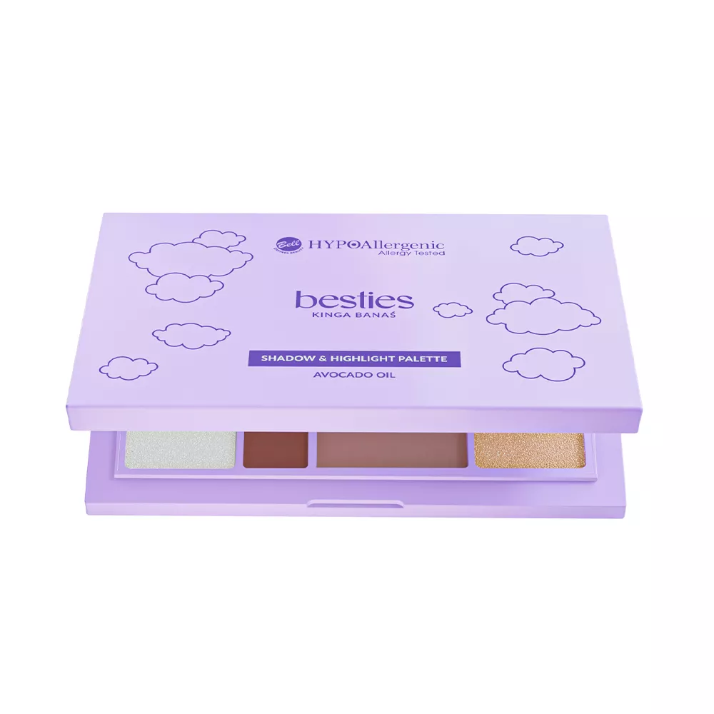 Paleta cieni i rozświetlaczy Bell HYPOAllergenic x Besties Shadow & Highlight Palette, stworzona przez Kingę z myślą o nowoczesnych entuzjastach makijażu, to niezastąpione narzędzie, które pozwoli Ci wykreować niezapomniane wersje siebie i podkreśli Twoją naturalną urodę. Paleta została starannie opracowana, aby sprostać oczekiwaniom nawet najbardziej wymagających miłośniczek makijażu. Produkt daje ogrom możliwości w tworzeniu zarówno dziennych, jak i wieczorowych makijaży. Miękkie, przyjemne w dotyku i intensywnie napigmentowane formuły łatwo się blendują, a praca z nimi to czysta przyjemność. Cienie się nie kruszą, nie osypują i pozwolą Ci zyskać trwały makijaż oka bez konieczności poprawiania go w ciągu dnia, a rozświetlacze stworzą na skórze lśniącą taflę. Zawarty w składach olej z awokado posiada właściwości nawilżające, dzięki czemu produkt nie wysuszy skóry. Paleta dostępna jest w jednej wersji kolorystycznej.