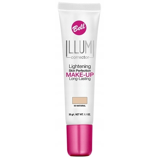 Bell Illumi Corrector to trwały fluid rozświetlająco-korygujący do twarzy w odcieniu 03, który doskonale minimalizuje widoczność niedoskonałości cery. Dzięki innowacyjnej formule z cząsteczkami odbijającymi i rozpraszającymi światło pod różnym kątem zapewnia perfekcyjny makijaż z efektem zdrowego, wypoczętego blasku. Produkt gwarantuje naturalny efekt, idealnie dopasowując się do koloru karnacji i pozostawiając skórę nawilżoną oraz pełną młodzieńczej świeżości.
