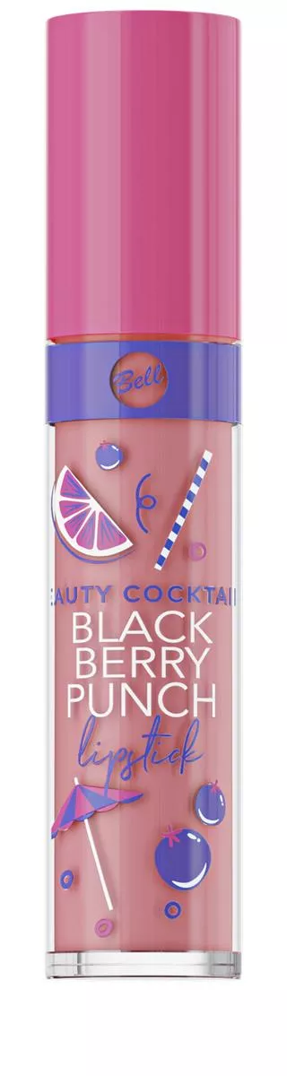 Bell Pomadka Beauty Coctails Blackberry Punch Lipstick 001 Delicious to kuszący koktajl o zapachu jeżyny, który otuli Twoje usta intensywnie napigmentowanym, matowym kolorem. Idealna na ciepłe, letnie dni, zapewnia długotrwały efekt makijażu. Dzięki zawartości wosku pszczelego nawilża i zmiękcza delikatną skórę ust. Aksamitna i komfortowa formuła pomadki pozwala na nadanie idealnego kształtu ustom, stanowiąc doskonałe dopełnienie każdej wakacyjnej stylizacji. Wyposażona w wygodny aplikator, umożliwia łatwą i równomierną aplikację.