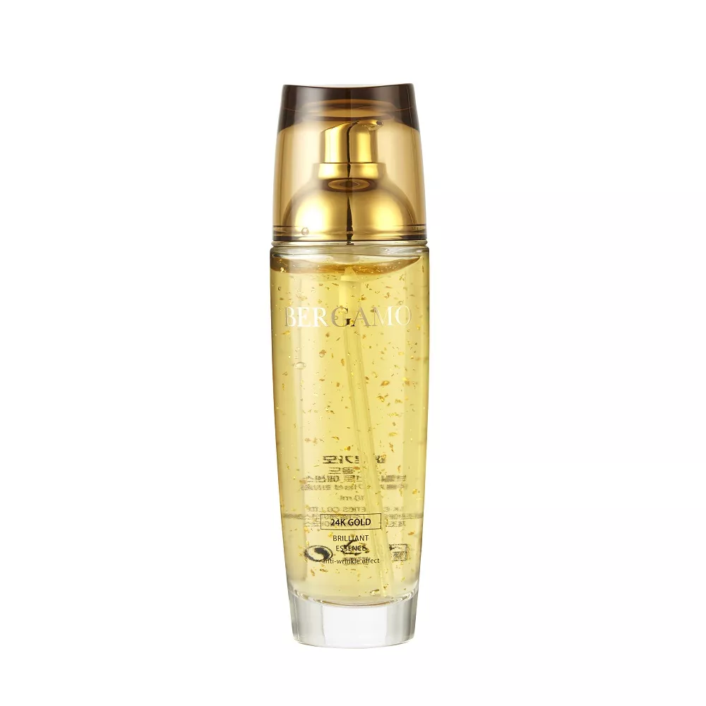 Bergamo 24K Gold Brilliant Essence to luksusowa esencja do twarzy o pojemności 110ml, wzbogacona czystym złotem, która zapewnia intensywne rozświetlenie, nawilżenie i wygładzenie skóry. Dzięki wyjątkowej formule, produkt pomaga przywrócić skórze zdrowy, promienny wygląd oraz równomierny koloryt.