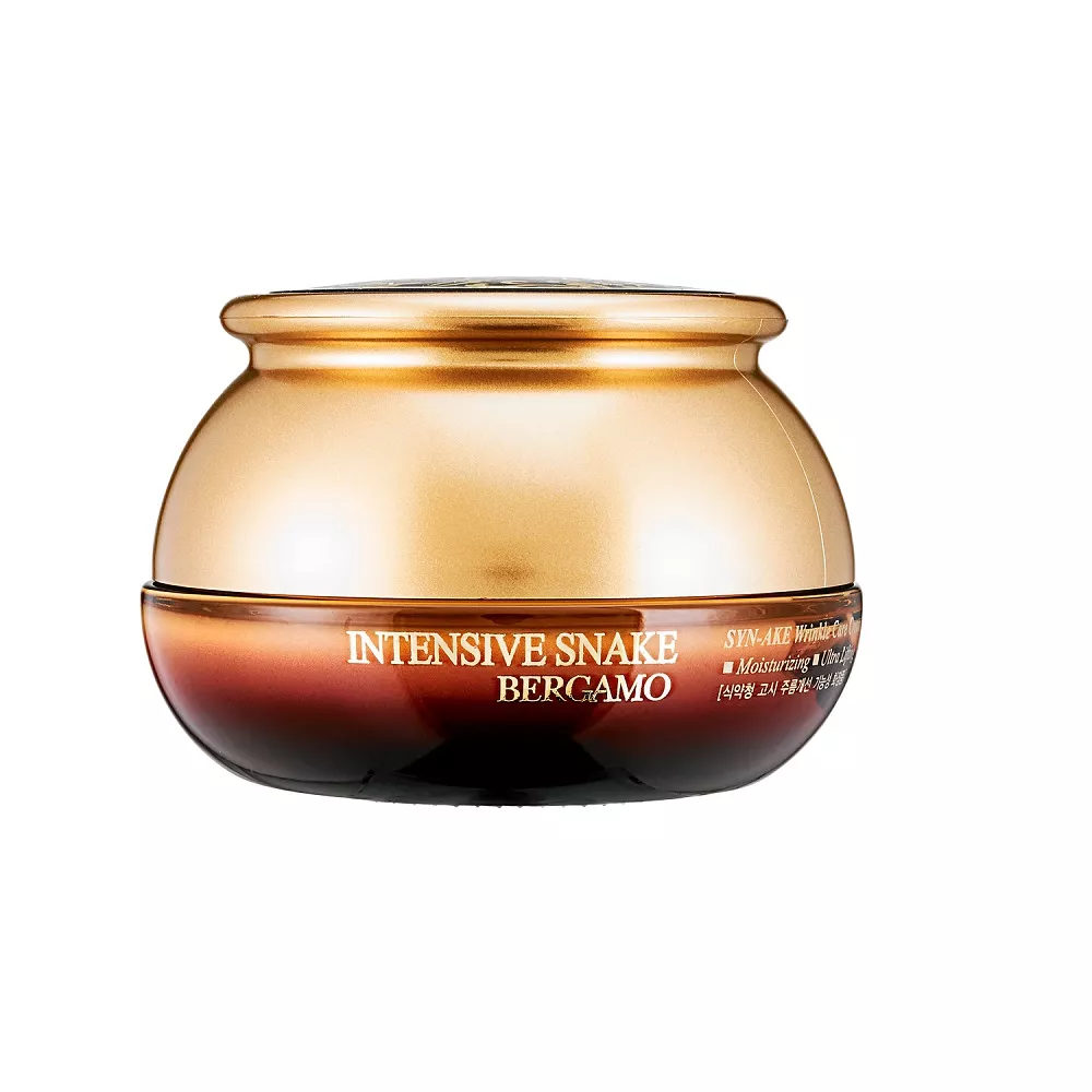 Bergamo Intensive Snake SYN-AKE Wrinkle Care Cream to innowacyjny przeciwzmarszczkowy krem do twarzy, który zawiera peptyd SYN-AKE, inspirowany składnikami jadu żmii. Formuła kremu skutecznie łagodzi napięcie mięśni twarzy, wygładza zarówno głębokie, jak i mimiczne zmarszczki oraz zapobiega powstawaniu nowych. Działa w sposób naturalny, nie ingerując w strukturę skóry, jednocześnie chroniąc ją przed negatywnym wpływem czynników zewnętrznych. Regularne stosowanie kremu przywraca twarzy zdrowy i promienny wygląd.