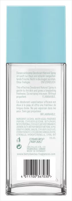 Dezodorant w sprayu Betty Barclay Oriental Bloom to propozycja dla kobiet, które cenią sobie trwałą świeżość, oryginalne nuty zapachowe oraz elegancję na co dzień. Podkreśl swój wyjątkowy styl i poczuj pewność siebie dzięki tej niepowtarzalnej kompozycji!