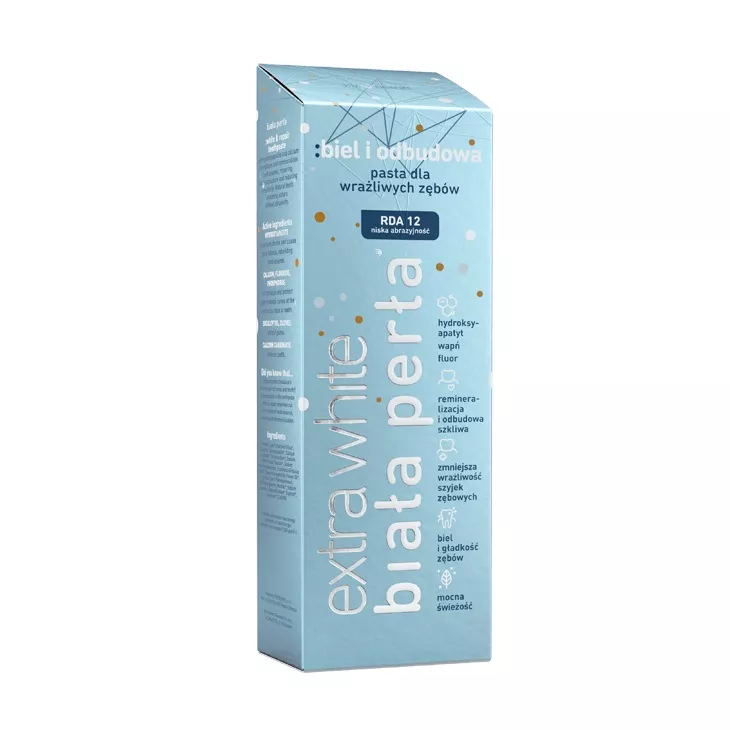 Biała Perła Biel i Odbudowa to wybielająca pasta do zębów o pojemności 75 ml, stworzona specjalnie dla osób z osłabionym szkliwem i nadwrażliwością zębów. Zapewnia kompleksową ochronę i odbudowę szkliwa, zmniejsza wrażliwość szyjek zębowych oraz pozostawia zęby białe i gładkie, gwarantując uczucie świeżości w jamie ustnej.