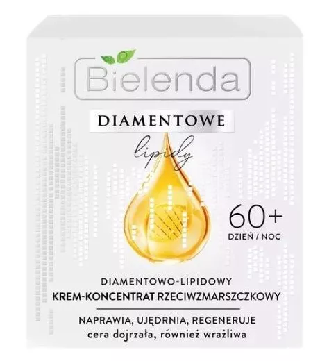 Bielenda Diamentowe Lipidy Diamentowo-Lipidowy Krem-Koncentrat Przeciwzmarszczkowy 60+ to doskonały wybór dla cery dojrzałej i wrażliwej. Ten krem na dzień i noc, zawierający 96% składników pochodzenia naturalnego, dostarcza skórze niezbędnych lipidów, zapewniając jej optymalne nawilżenie oraz głęboką regenerację. Pomaga wzmocnić naturalną barierę wodno-lipidową skóry, minimalizując oznaki starzenia, takie jak wiotczenie i zmarszczki, a także poprawia ogólną jakość i kondycję cery.