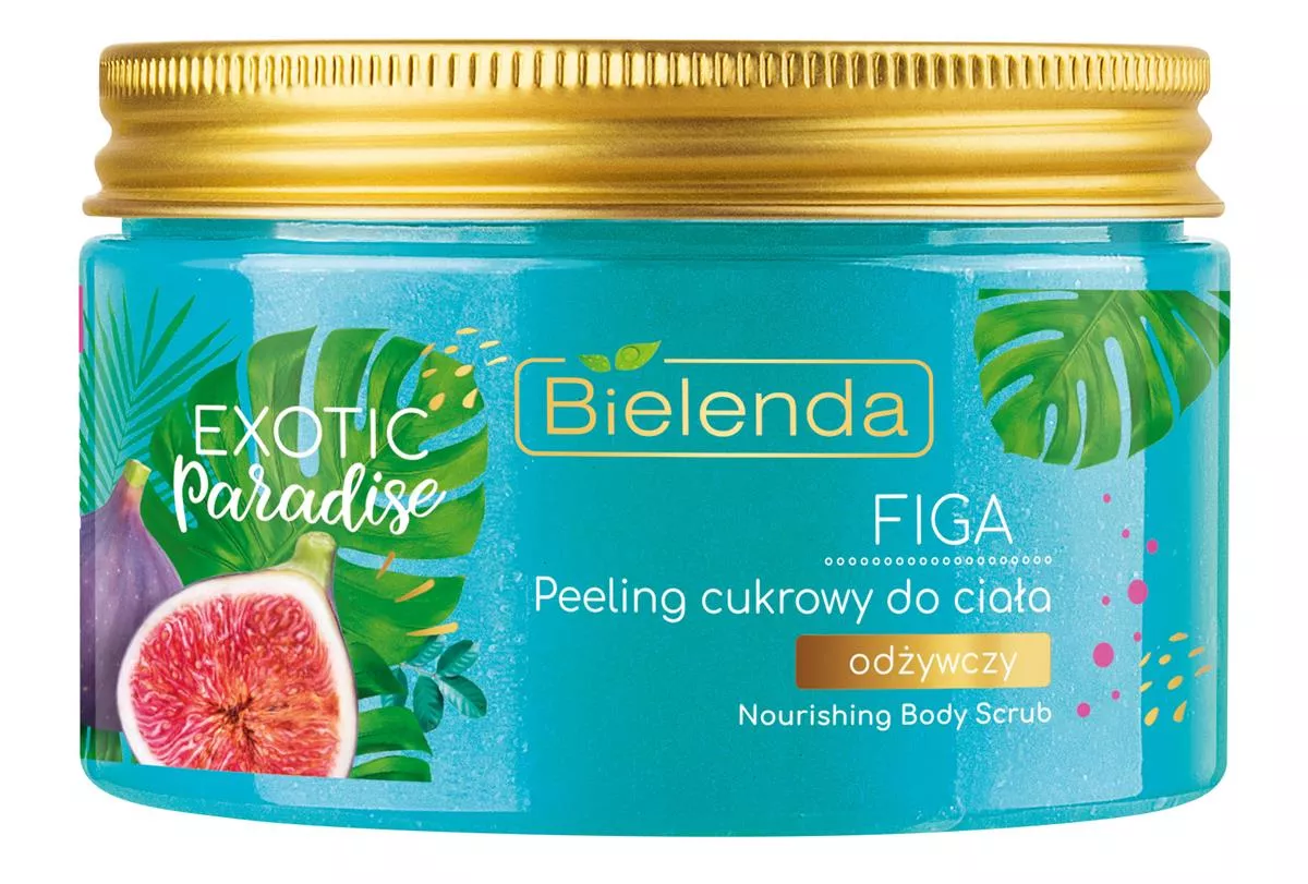 Przenieś się do egzotycznego raju z odżywczym peelingiem cukrowym do ciała Bielenda Exotic Paradise Figa. Peeling ten doskonale odżywia, wygładza i odświeża skórę, łącząc działanie oczyszczających kryształków naturalnego cukru oraz pielęgnacyjnych składników aktywnych. Delikatnie i skutecznie złuszcza martwy naskórek, eliminując szorstkość i pozostawiając skórę miękką i gładką w dotyku. Dzięki ekstraktowi z figi i bogatej w witaminy wodzie kokosowej, Twoja skóra poczuje się odżywiona i pełna energii. Pobudzający, owocowy zapach otuli Twoje ciało energetyzującą nutą.