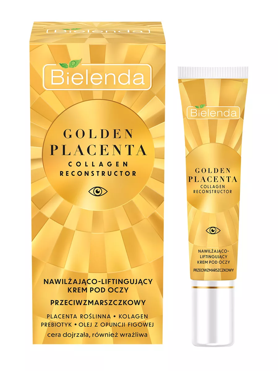 Przedstawiamy Bielenda Golden Placenta Collagen Reconstructor - nawilżająco-liftingujący krem przeciwzmarszczkowy pod oczy, który intensywnie nawilża i wzmacnia delikatną skórę wokół oczu. Dzięki zastosowaniu roślinnej placenty, produkt działa jak antidotum na oznaki starzenia się skóry, wspomagając jej regenerację i odżywienie. Krem skutecznie napina skórę, wygładza zmarszczki, rozświetla oraz zmniejsza widoczność cieni pod oczami.