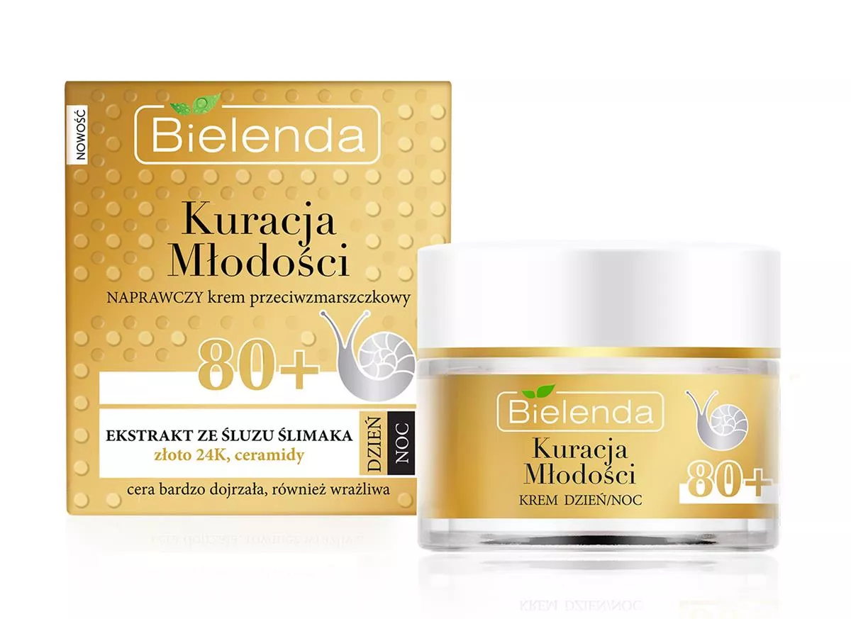 Bielenda Kuracja Młodości Naprawczy Krem Przeciwzmarszczkowy 80+ to zaawansowany kosmetyk przeznaczony do pielęgnacji cery bardzo dojrzałej. Krem ten widocznie poprawia wygląd i kondycję skóry, odnawia, rewitalizuje i napina, sprawiając, że rysy twarzy wyglądają młodziej. Działa przeciwzmarszczkowo, spłycając głębokie zmarszczki i bruzdy, ujędrniając oraz opóźniając procesy wiotczenia skóry. Ponadto, rozjaśnia przebarwienia, głęboko odżywia, nawilża i wzmacnia cienką, przesuszoną skórę dojrzałą.
