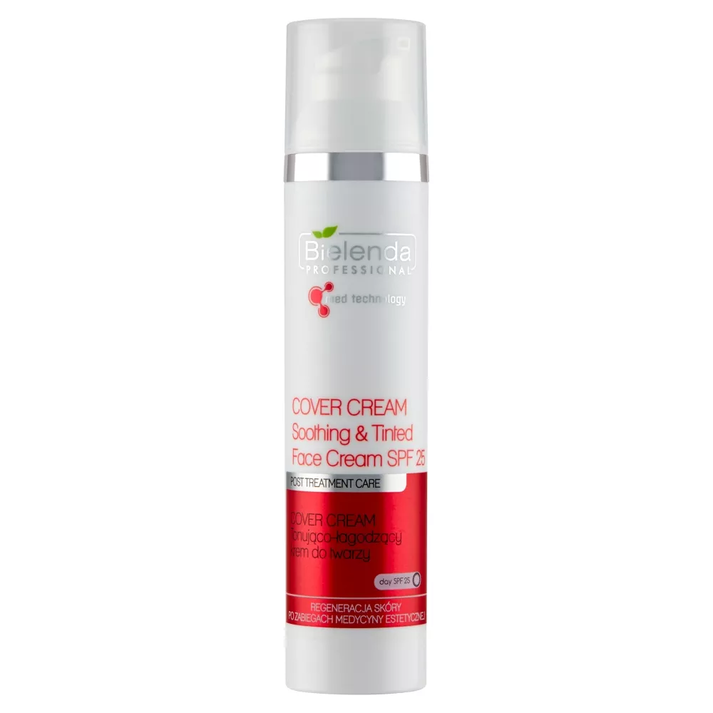 Bielenda Professional Cover Cream Tonująco-łagodzący krem do twarzy SPF 25 to zaawansowany produkt stworzony z myślą o skórze podrażnionej po zabiegach medycyny estetycznej oraz intensywnych zabiegach dermokosmetycznych. Dzięki swojej formule idealnie sprawdzi się po takich procedurach jak mezoterapia mikroigłowa, laseroterapia czy peelingi kwasami. Krem zapewnia ochronę przed promieniowaniem słonecznym SPF 25 oraz łagodzi podrażnienia. Jego uniwersalny kolor doskonale dopasowuje się do każdego odcienia i struktury skóry.