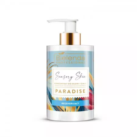 Regenerujący krem do dłoni i ciała Bielenda Professional Is Sensory Skin, Paradise to doskonałe rozwiązanie dla każdego typu skóry, a szczególnie dla skóry odwodnionej i wymagającej intensywnej rewitalizacji. Jego unikalna formuła, wzbogacona w kwasy Omega 3 i 6, masło mango, ceramidy oraz kompleks emolientów, zapewnia głęboką regenerację, odżywienie i długotrwałe nawilżenie. Produkt otula skórę orzeźwiającym aromatem arbuza, gruszki, pigwy, z sercem melona i białej brzoskwini oraz nutą bazy z mimozy i białego piżma.
