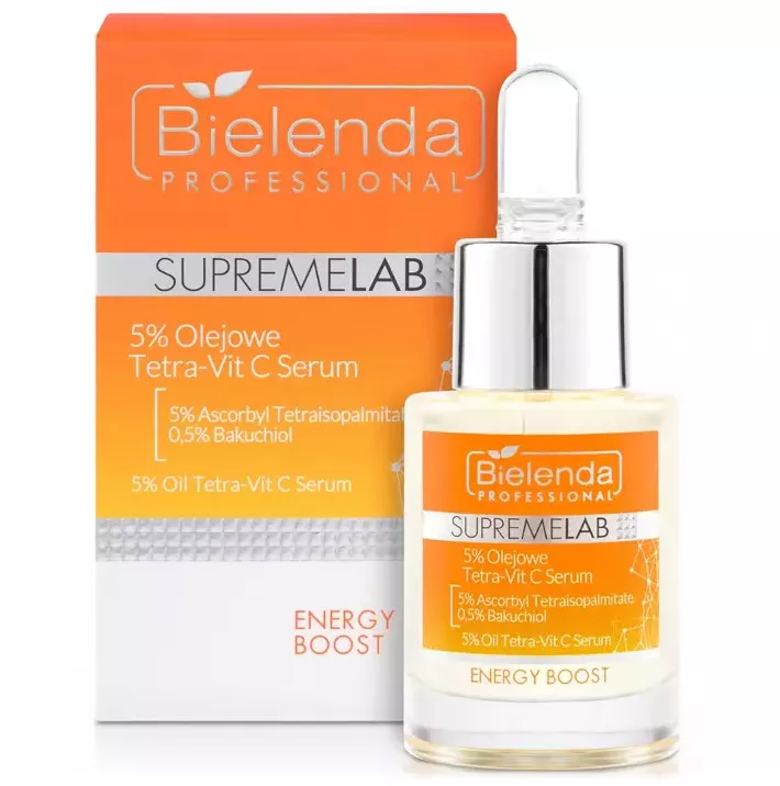 Bielenda Professional Supremelab, Energy Boost 5%, olejowe serum Tetra-Vit C to innowacyjny kosmetyk, który rozświetli i rozjaśni Twoją skórę, pomagając w walce z przebarwieniami. Regularne stosowanie serum nie tylko ujednolici koloryt, ale także ochroni skórę przed procesem fotostarzenia. Dzięki unikatowemu połączeniu ultrastabilnej witaminy C oraz kwasu ferulowego, serum gwarantuje skuteczność i rewelacyjne efekty dla Twojej skóry.