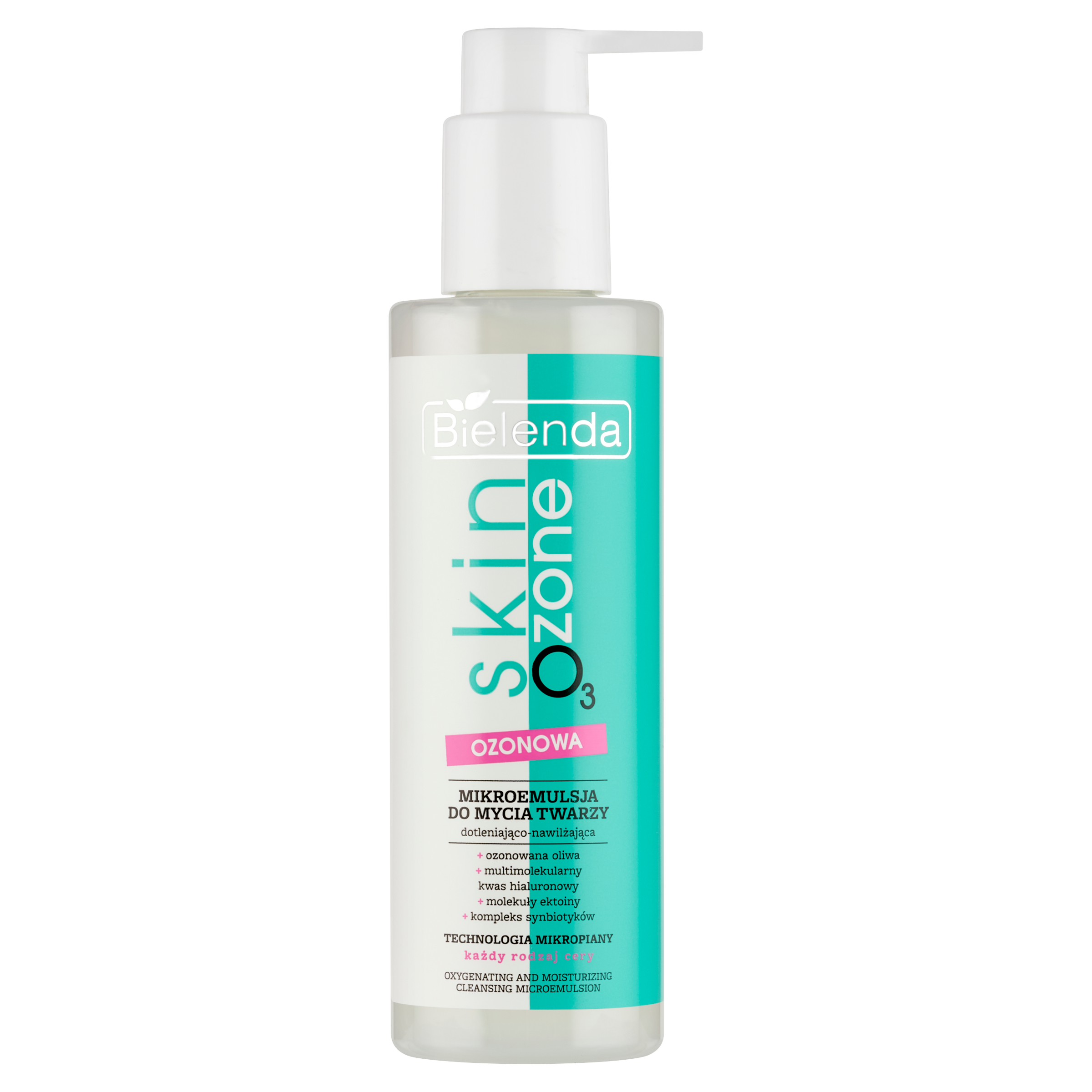 Bielenda Skin o3 zone, ozonowa mikroemulsja do mycia twarzy dotleniająco-nawilżająca 195 ml to innowacyjny produkt do codziennego oczyszczania każdego rodzaju cery. Dzięki zastosowaniu technologii mikropiany i milionom mikroskopijnych bąbelków, mikroemulsja skutecznie, a jednocześnie delikatnie usuwa zanieczyszczenia, nie powodując przesuszenia skóry. Produkt zapewnia intensywne nawilżenie, pozostawia skórę gładką, miękką oraz przyjemnie odświeżoną i orzeźwioną. Formuła oparta na aktywnym ozonie (O3), ozonowanej oliwie, multimolekularnym kwasie hialuronowym, ektoinach i kompleksie synbiotyków pozwala przenieść pielęgnację skóry na nowy poziom dotlenienia i regeneracji.