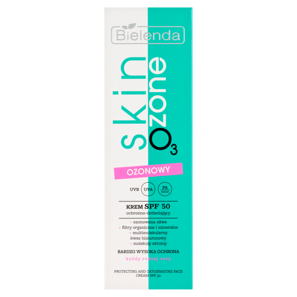 Bielenda Skin o3 zone ozonowy krem ochronno-dotleniający SPF50 to innowacyjny produkt do codziennej pielęgnacji, który skutecznie chroni skórę przed szkodliwym promieniowaniem słonecznym, fotostarzeniem, czynnikami zewnętrznymi oraz przebarwieniami. Lekka formuła kremu doskonale sprawdza się pod makijażem, zapewniając wielowymiarową ochronę oraz intensywne dotlenienie i nawilżenie skóry. Przeznaczony dla każdego rodzaju cery, krem gwarantuje bardzo wysoką ochronę przed promieniowaniem UVA i UVB, a także widoczne efekty rewitalizujące i rozświetlające.