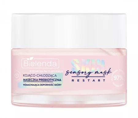 Twoja skóra potrzebuje natychmiastowego restartu? Aplikuj jej dawkę sensorycznej pielęgnacji z maseczką prebiotyczną Bielenda Skin Restart Sensory Mask, a będzie Ci wdzięczna. Idealna dla wrażliwej, naczynkowej i osłabionej cery, maseczka kojąco-chłodząca zapewnia natychmiastowe odczucie ukojenia i przyjemnego chłodzenia. Dzięki wysokiej zawartości aktywnych składników pochodzenia naturalnego, maseczka cudownie łagodzi, regeneruje i nawilża, a także wzmacnia odporność skóry. Efekt? Ukojona, zregenerowana i lepiej wyglądająca skóra, podrażnienia złagodzone.