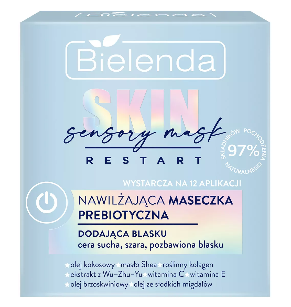 Twoja skóra potrzebuje natychmiastowego restartu? Zaaplikuj jej dawkę sensorycznej pielęgnacji z maseczką prebiotyczną Skin Restart Sensory Mask od Bielendy, a będzie Ci wdzięczna. Idealna dla suchej, szarej, pozbawionej blasku cery, maseczka nawilżająca zapewnia natychmiastowe odczucie nawodnienia i pobudzenia skóry. Dzięki wysokiej zawartości aktywnych składników pochodzenia naturalnego, maseczka optymalnie nawilża skórę, przywraca jej naturalny blask i sprawia, że jest perfekcyjnie gładka.
