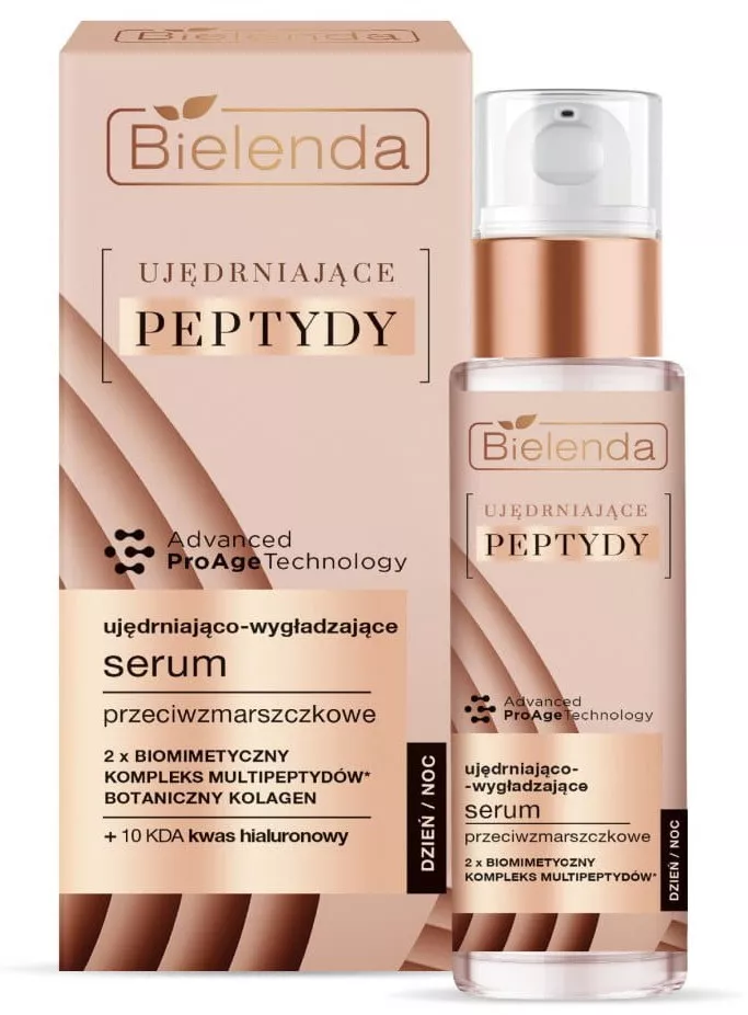 Przedstawiamy Bielenda Ujędrniające Peptydy, ujędrniająco-wygładzające serum przeciwzmarszczkowe na dzień i noc, które jest idealnym rozwiązaniem dla cery dojrzałej, w tym także wrażliwej. Dzięki zaawansowanej technologii Advanced Pro Age Technology, serum łączy biomimetyczny kompleks multipeptydów z botanicznym kolagenem, aby skutecznie spowalniać widoczne oznaki starzenia. Produkt ten ujędrnia skórę, poprawia jej jakość, zapewniając zauważalnie młodszy wygląd i komfort użytkowania.