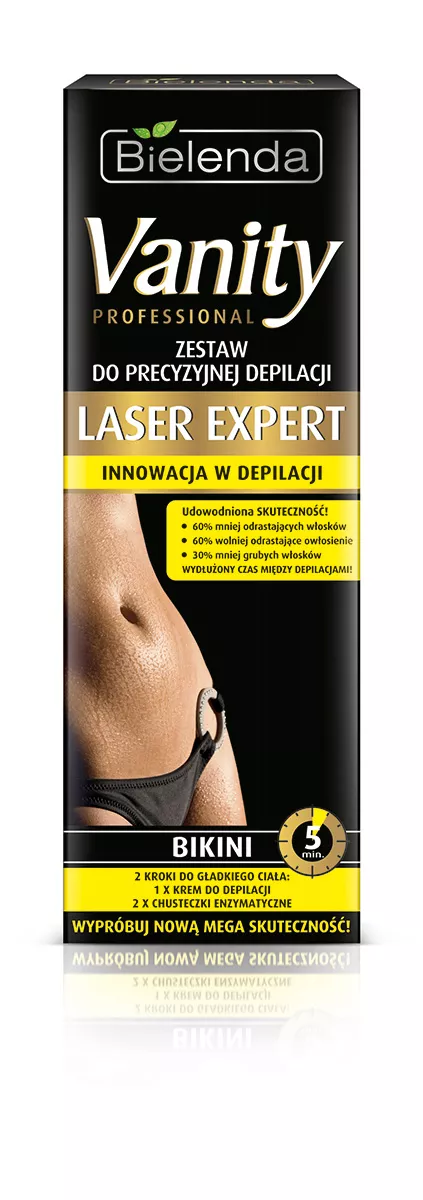 Zestaw do precyzyjnej depilacji Bielenda Vanity Laser Expert to profesjonalne rozwiązanie do usuwania zbędnego owłosienia w strefie bikini. Dzięki zastosowaniu innowacyjnej formuły z TELOCAPILU™ - roślinnego ekstraktu, produkt skutecznie redukuje ilość i grubość włosków, znacząco wydłużając czas między kolejnymi zabiegami depilacji.