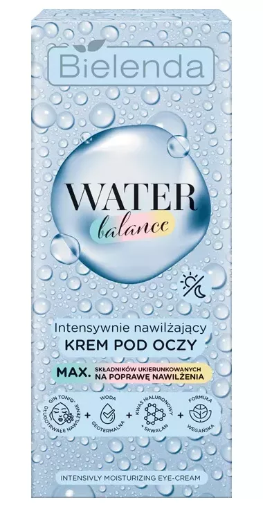 Bielenda Water Balance Intensywnie Nawilżający Krem Pod Oczy to wegański produkt, który łączy intensywną pielęgnację z lekką formułą, nie obciążając delikatnej skóry wokół oczu. Skutecznie nawilża suchy i skłonny do przesuszania naskórek, zapewniając efekt satynowej gładkości, świeżości i rozświetlenia. Idealnie komponuje się z innymi kosmetykami z linii Water Balance, wzmacniając efekt nawilżający i dbając o cerę suchą oraz odwodnioną.