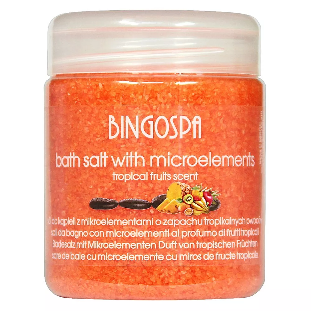 Kąpiele z solą BingoSpa to prawdziwe dobrodziejstwo dla skóry. Sól, dzięki czystej postaci mikro i makroelementów, jest doskonale przyswajalna przez skórę, odżywia ją i ujędrnia. Wyprodukowana z naturalnej soli kamiennej, sól BingoSpa jest pełna zapachu owoców tropikalnych i wzbogacona retinolem.