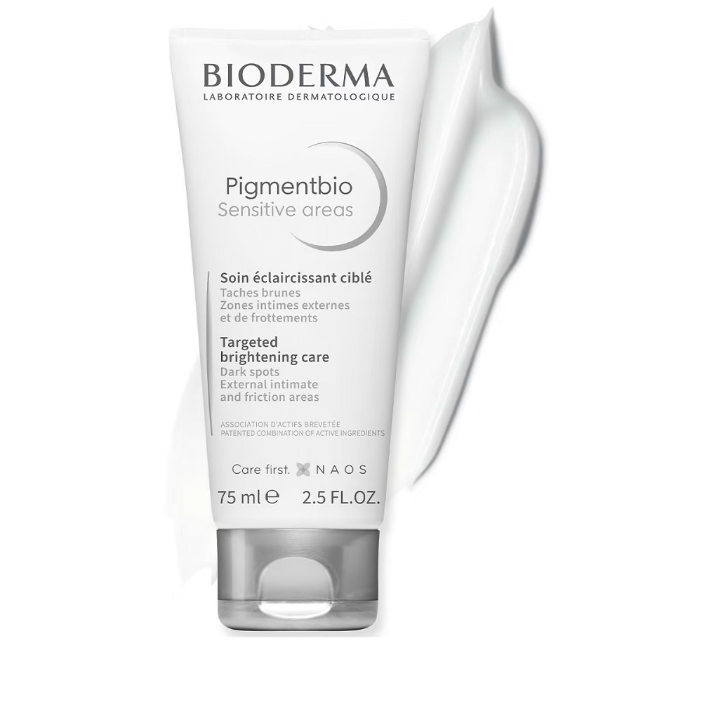 Bioderma Pigmentbio Sensitive Areas to specjalistyczny krem do depigmentacji, opracowany z myślą o rozświetlaniu i ujednolicaniu skóry w miejscach narażonych na tarcie, depilację czy kontakt z odzieżą, co często prowadzi do powstawania przebarwień. Produkt jest idealny do stosowania na delikatne obszary ciała, takie jak kolana, szyja, pachy, uda oraz pachwiny.