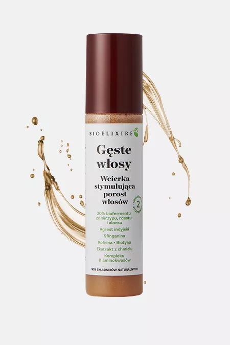 Szybko zatrzymaj problem wypadania włosów i sięgnij po naturalne serum o potwierdzonym skutecznym działaniu. Uzupełnij codzienną pielęgnację o stymulującą wzrost włosów wegańską wcierkę Bioelixire Gęste Włosy, która zawiera 98% składników naturalnych. Ten wegański kosmetyk jest wolny od parabenów i silikonów. Użyta substancja konserwująca jest zatwierdzona do stosowania w kosmetykach naturalnych zgodnie ze standardami ECOCERT, COSMOS, NATURE, BDIH. W składzie kosmetyku nie ma alergenów w kompozycji zapachowej. Dzięki stosowaniu kosmetyku udaje się zahamować wypadanie włosów. Ponadto wcierka pobudza włos do prawidłowego wzrostu. Pasma są mocniejsze, odbudowane i zregenerowane. Stosowanie wcierki poprawia jakość struktur keratynowych dla mocniejszych i zdrowszych pasm.