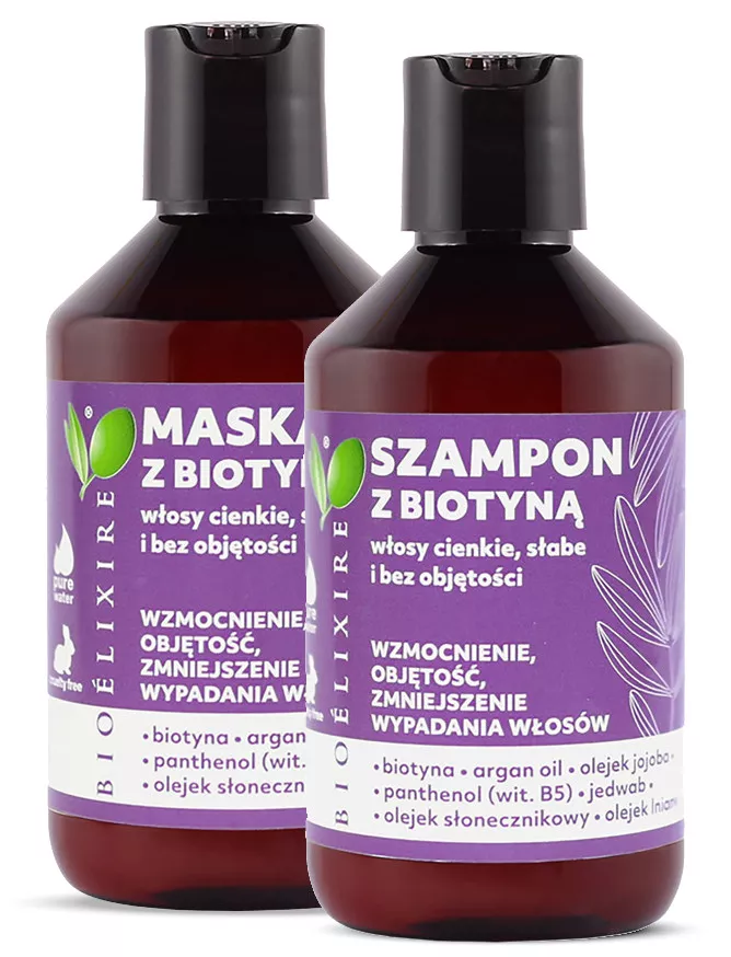 Zestaw do pielęgnacji włosów Bioelixire z biotyną to idealne rozwiązanie dla osób z włosami cienkimi i delikatnymi, które potrzebują wzmocnienia i odbudowy. Dzięki starannie dobranym składnikom, zestaw ten regeneruje kosmyki, ogranicza nadmierne wypadanie, odżywia włosy i wspiera ich porost. Efekt to grubsze, bardziej gęste i zdrowsze włosy, które pięknie lśnią i są miękkie w dotyku.