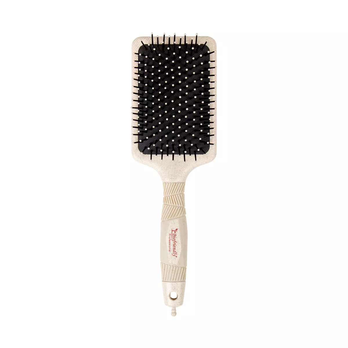 Biofriendly, szczotka do włosów płaska to innowacyjny produkt wykonany z biomateriału ze słomy pszenicznej, odpornego na wysokie temperatury do 110°C. Dzięki zastosowaniu technologii Nano-Icon szczotka skutecznie usuwa nieprzyjemne zapachy, działa sterylizująco i zapobiega powstawaniu pleśni. Lekka konstrukcja oraz ergonomiczny, miękki uchwyt sprawiają, że praca z tą szczotką jest wyjątkowo wygodna, a stylizacja włosów staje się szybka i komfortowa. Szybkie nagrzewanie i długie utrzymywanie ciepła ułatwiają modelowanie, a duże otwory przyspieszają cyrkulację powietrza podczas suszenia. Dodatkowo szczotka wyposażona jest w szpikulec, który pomaga w precyzyjnym dzieleniu pasm i tworzeniu sekcji włosów.