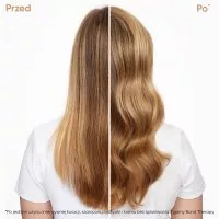 - Wyraźnie wygładza włosy, nadając im zdrowy połysk i miękkość.