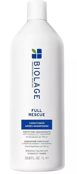 Biolage Full Rescue to wzmacniająca odżywka do włosów, która zapewnia wyjątkową równowagę między intensywnym wzmocnieniem pasm, natychmiastowym zwiększeniem objętości oraz ochroną skóry głowy. Opracowana specjalnie z myślą o włosach osłabionych, cienkich i rzadkich, wspiera zdrowy wygląd włosów już od nasady aż po same końce.
