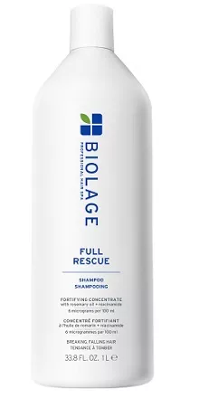 Biolage Full Rescue to wzmacniający szampon do włosów o pojemności 1000 ml, stworzony z myślą o delikatnej pielęgnacji i skutecznym wzmocnieniu nawet cienkich, osłabionych włosów. Zapewnia idealną równowagę pomiędzy natychmiastowym zwiększeniem objętości, ochroną skóry głowy a wsparciem zdrowego wyglądu włosów na każdym etapie ich wzrostu.