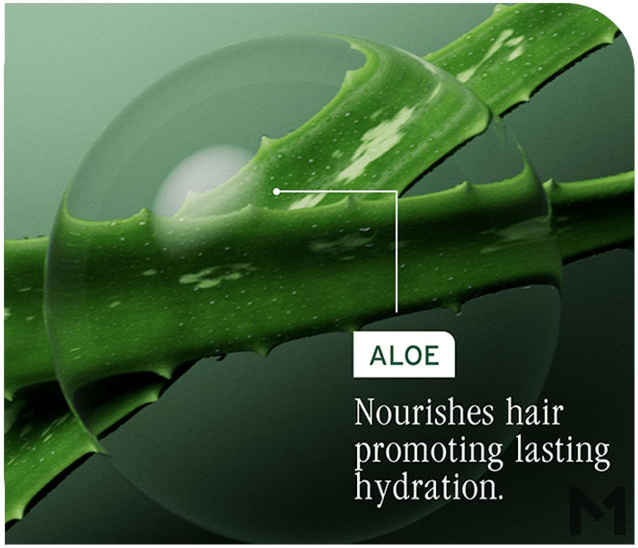 - Aloes – znany z właściwości zatrzymujących wilgoć, intensywnie odżywia włosy i pomaga utrzymać optymalny poziom nawilżenia.