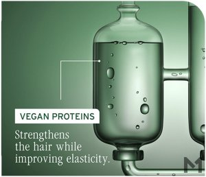 - Wegańskie proteiny – wzmacniają strukturę włosa, wygładzają rozdwojone końcówki oraz przywracają sprężystość i miękkość