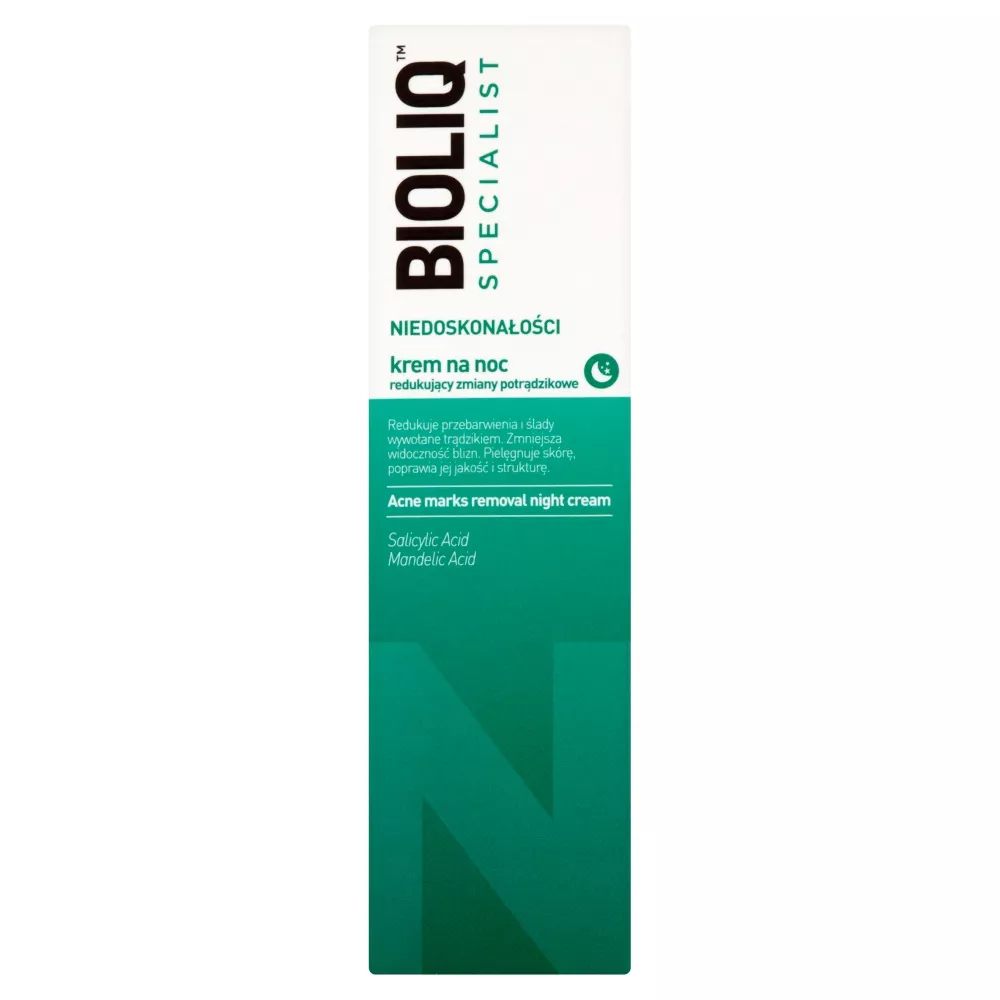 Bioliq Specialist Niedoskonałości krem na noc to idealne rozwiązanie dla osób zmagających się ze zmianami potrądzikowymi. Dzięki unikalnej formule, krem ten wspomaga odbudowę skóry, redukując widoczność blizn i przebarwień potrądzikowych. Zawartość kwasu salicylowego i migdałowego nie tylko odnowi Twoją skórę, ale również delikatnie ją złuszczy, zapewniając gładkość i jednorodność. Dodatkowo, olej Tamanu działa łagodząco na podrażnienia i zaczerwienienia, wspierając regenerację skóry.